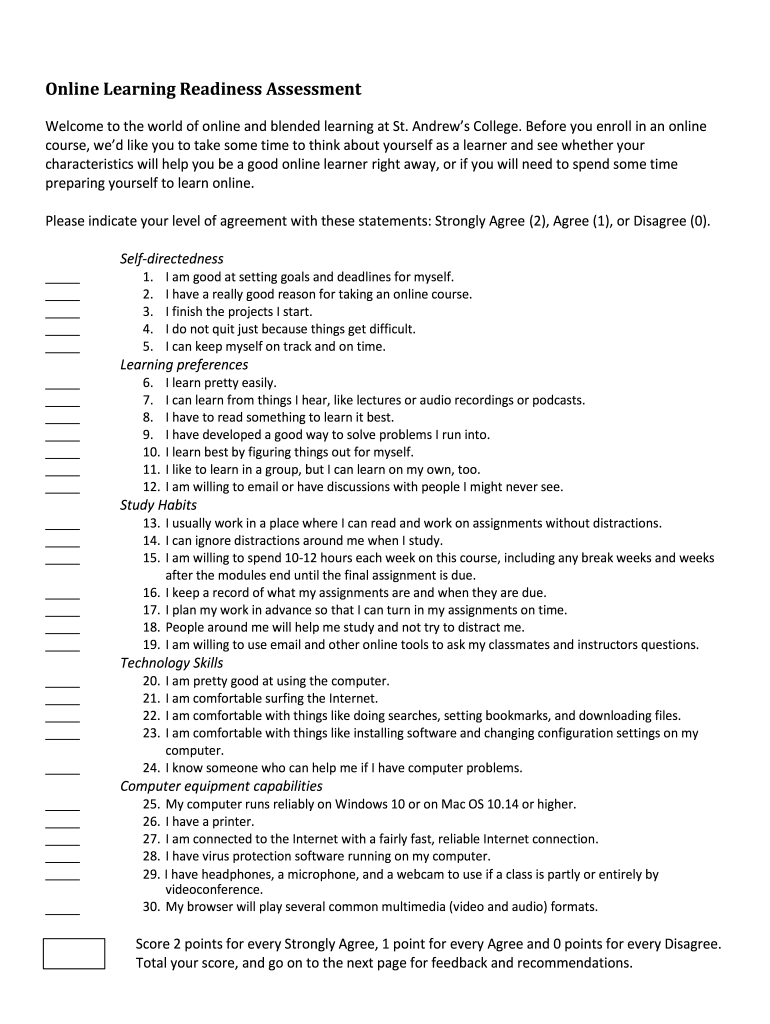 How to fill out online learning readiness assessment