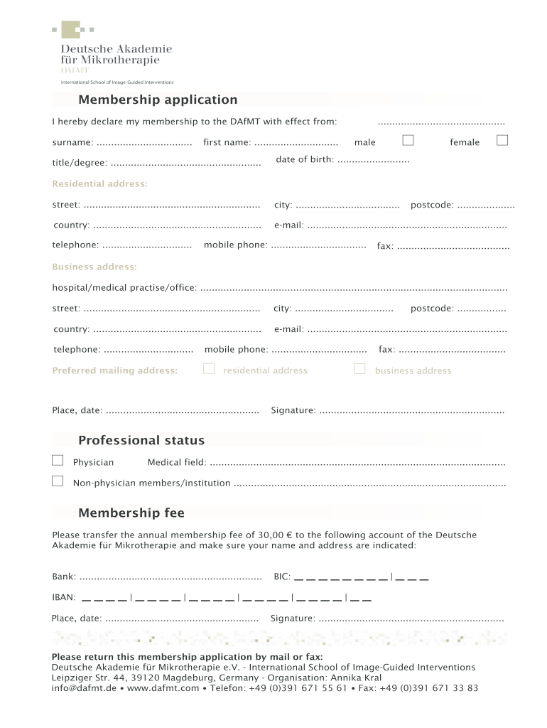 Get the free I hereby declare my membership to the DAfMT with effect from: