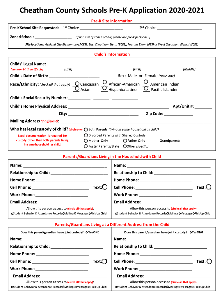 Pre-k application information can be filled out either online or in-person by providing accurate and complete details as requested.