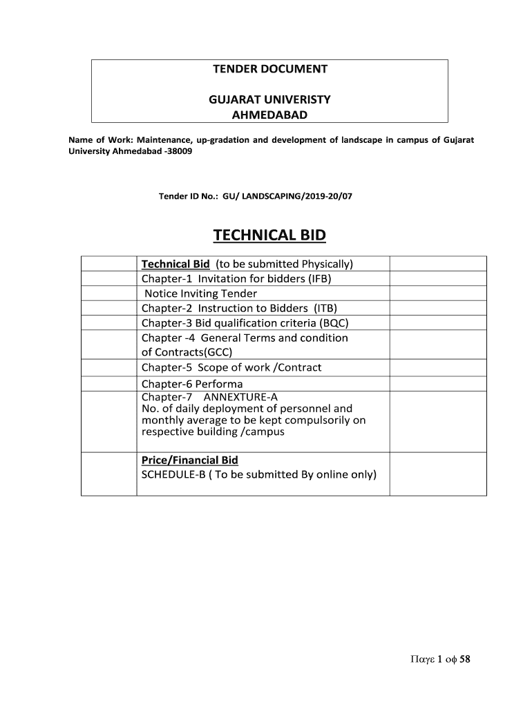 University Ahmedabad 38009Tender ID No.: GU/ LANDSCAPING/201920/07TECHNICAL