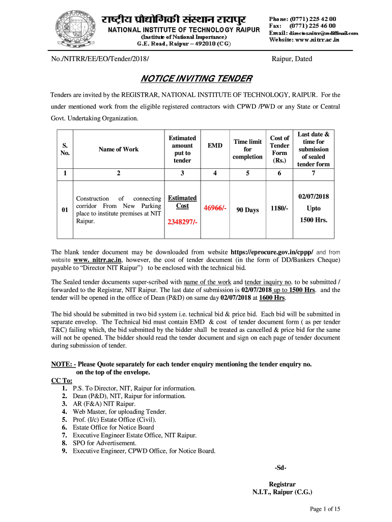 Get the National Institute of Technology Raipur tenders. Free view of ...