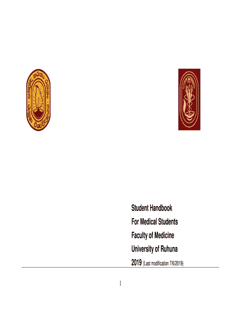 Student Handbook For Medical Students Faculty of Medicine University of Rehung 2019 (Last modification 7/6/2019) 1The Flag of the Faculty of Medicine 2