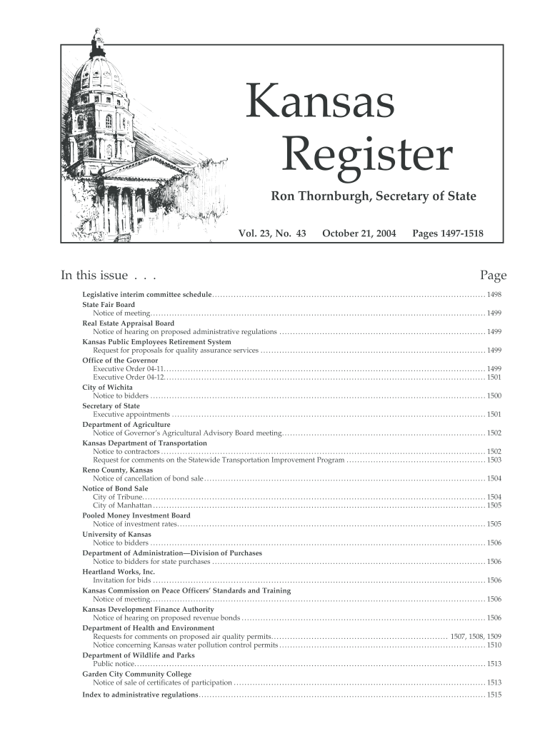 Vol. 23, No. 43In this issue. . . October 21, 2004Pages 14971518PageLegislative interim committee schedule. . . . . . . . . . . . . . . . . . . . . . . . . . . . . . . . . . . . . . . . . . . . .