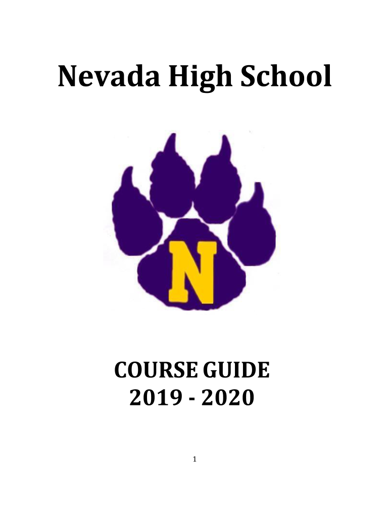 NevadaHighSchool COURSEGUIDE 20192020 1TABLE OF CONTENTS Cover Page1Table of Contents2Introduction/Equity Statement/Interpreter Services34Registration Procedures & Independent Study Courses5Schedule