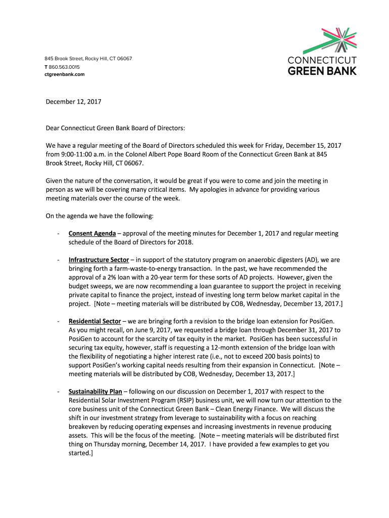 Get the free July 14, 2017 Dear Connecticut Green Bank Board of Directors