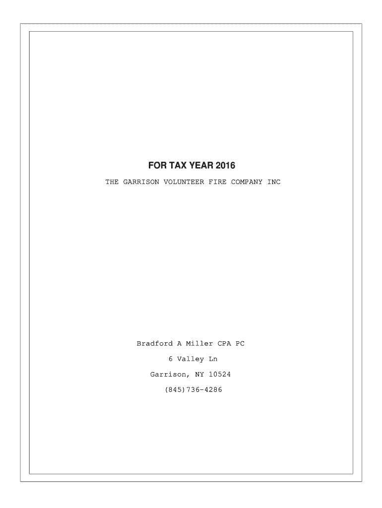 THE GARRISON VOLUNTEER FIRE COMPANY INC Bradford A Miller CPA PC