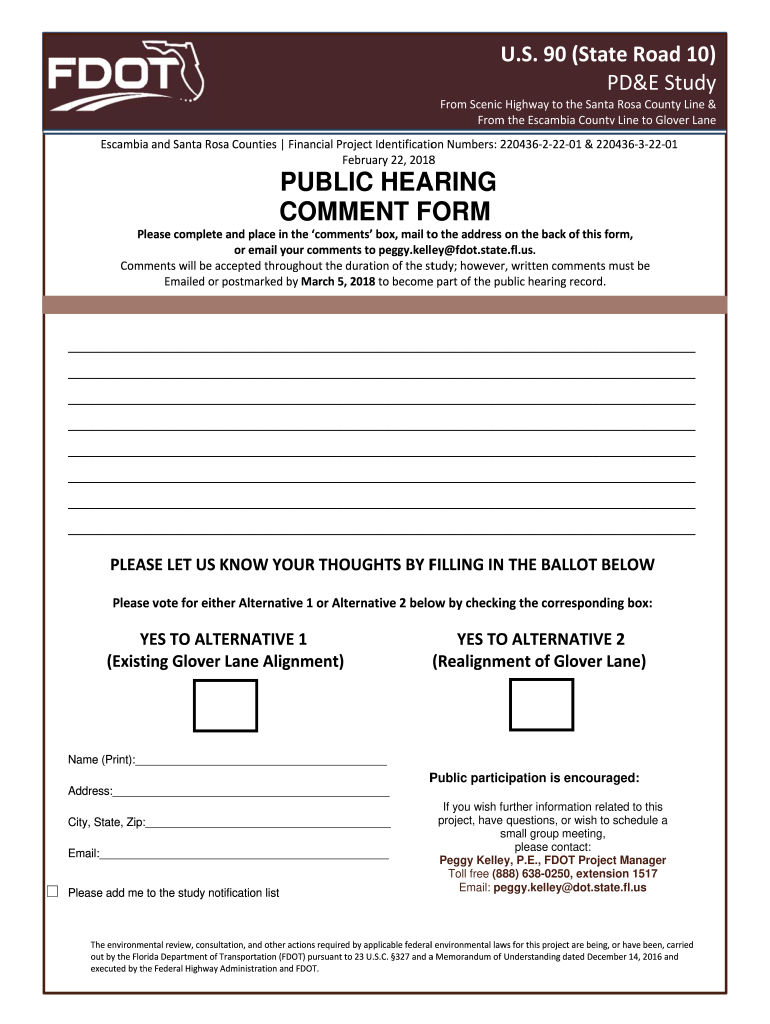 U.S.90((Stater oad10) Restudy FromScenicHighwaytoth heSantaRosaC Countywide mtheEscambiaCountyLineto oGloverLane From EscambiaaandSantaRo counties FinancialProje ectIdentificatioonNumbers:222043622201&22043632201