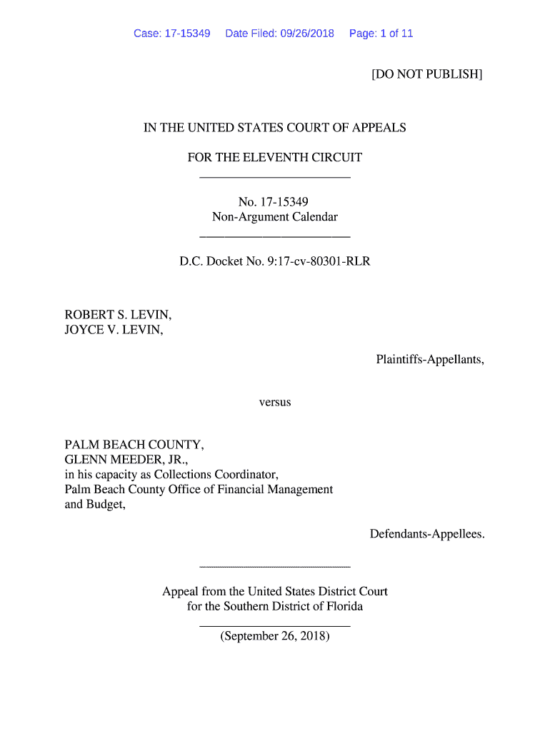 Case: 1715349Date Filed: 09/26/2018Page: 1 of 11 DO NOT PUBLISH IN THE UNITED STATES COURT OF APPEALS FOR THE ELEVENTH CIRCUIT No. 1715349 Argument Calendar D.C. Docket No. 9:17cv80301RLRROBERT S.