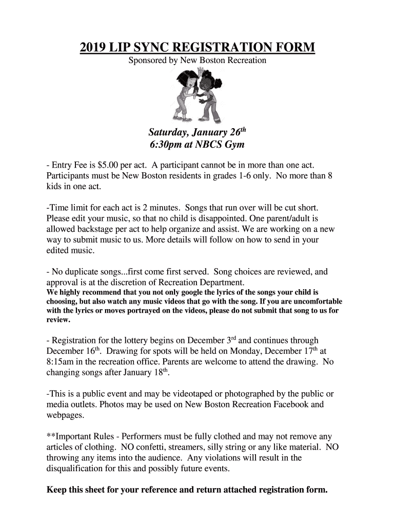 Get the free 2019 LIP SYNC REGISTRATION FORM