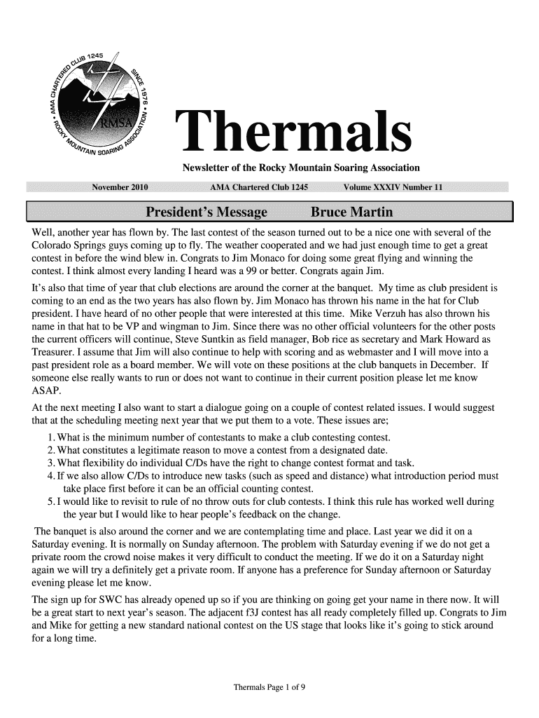 November 2010AMA Chartered Club 1245Presidents MessageVolume XXXIV Number 11Bruce Martinez, another year has flown by. The last contest