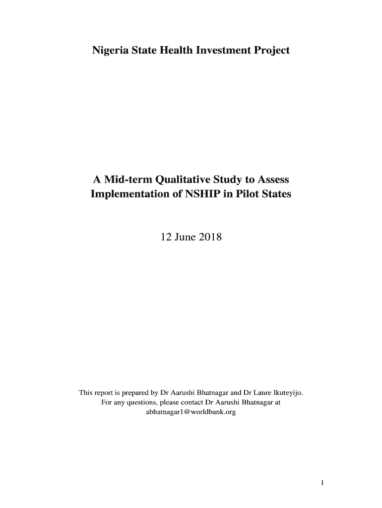 Nigeria State Health Investment Project Midterm Qualitative Study to Assess