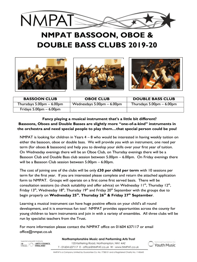 Get the free NMPAT BASSOON, OBOE & DOUBLE BASS CLUBS 2019-20