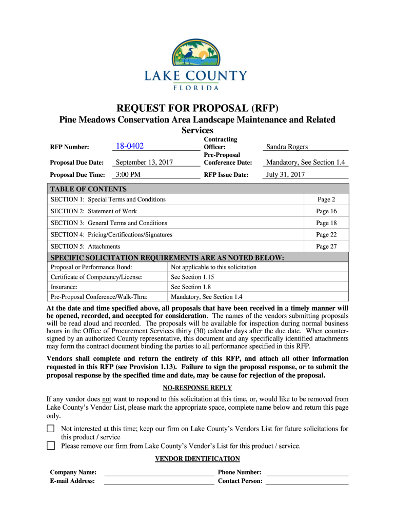 RFP Number:180402Proposal Due Date:September 13, 2017Contracting