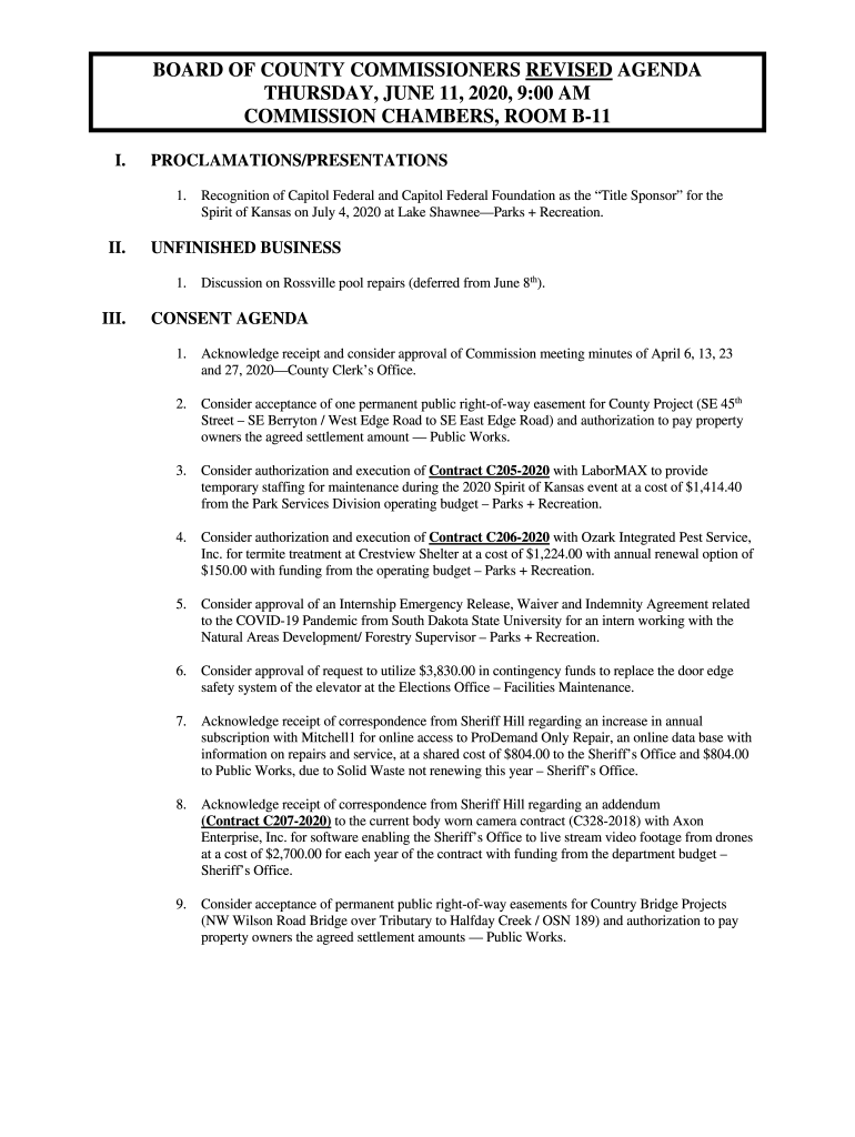 BOARD OF COUNTY COMMISSIONERS REVISED AGENDA