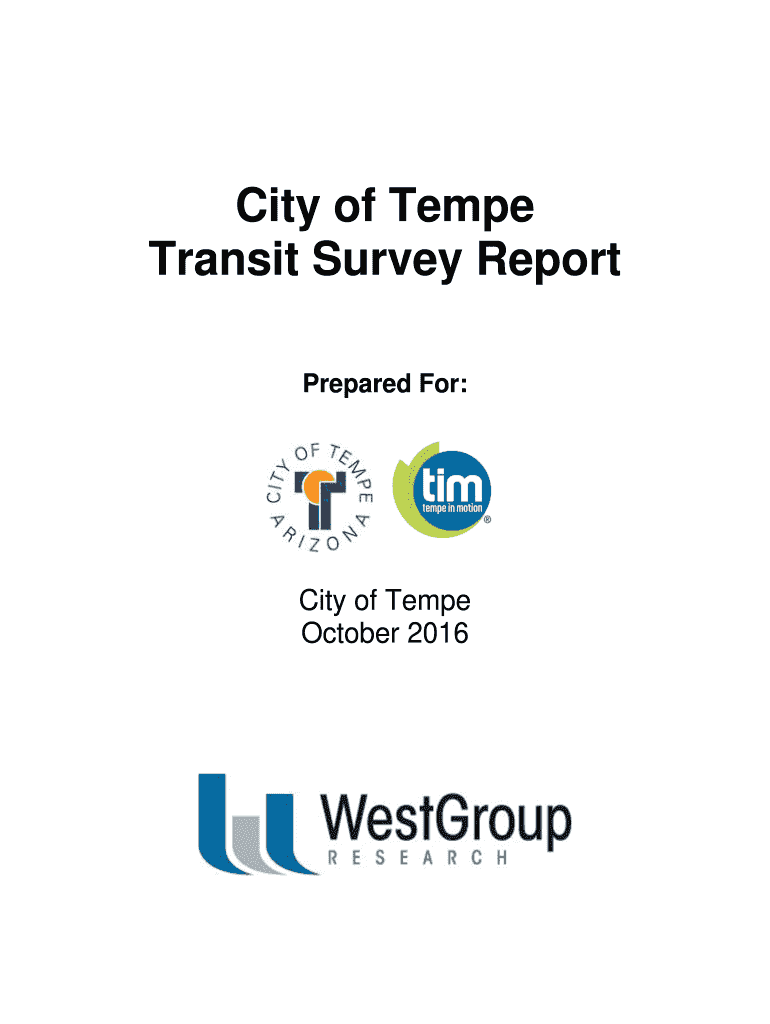 City of Tempe Transit Survey Report Prepared For:City of Tempe October 2016City of Tempe 2016 Transit Survey Reportage imitable of Contents Section:Page #:Executive Summary & Conclusions .................................................................