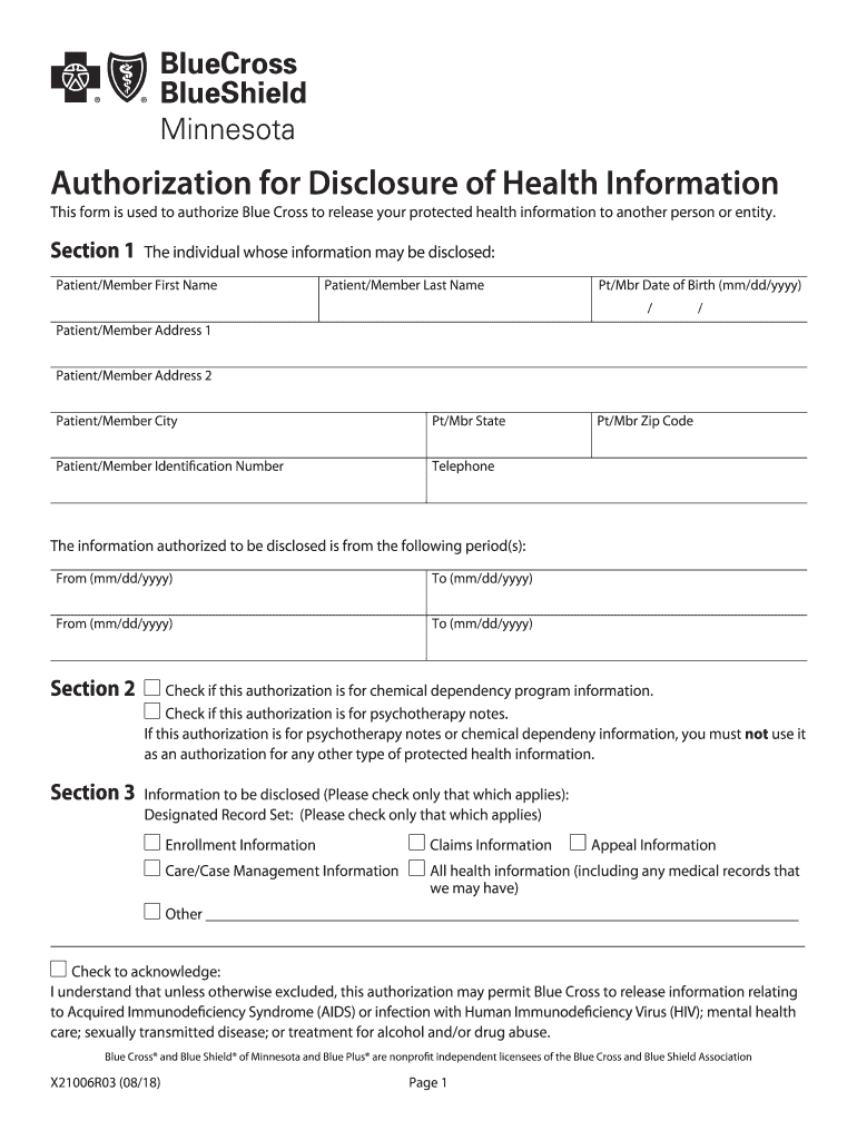 This form is used to authorize Blue Cross to release your protected health information to another person or entity. Section 1The individual whose