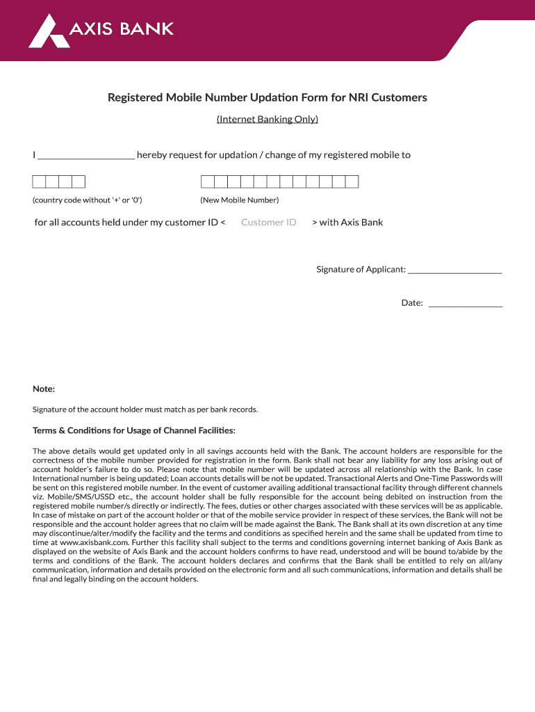 Get the free Registered Mobile Number Updation Form for NRI Customers28-01-2020