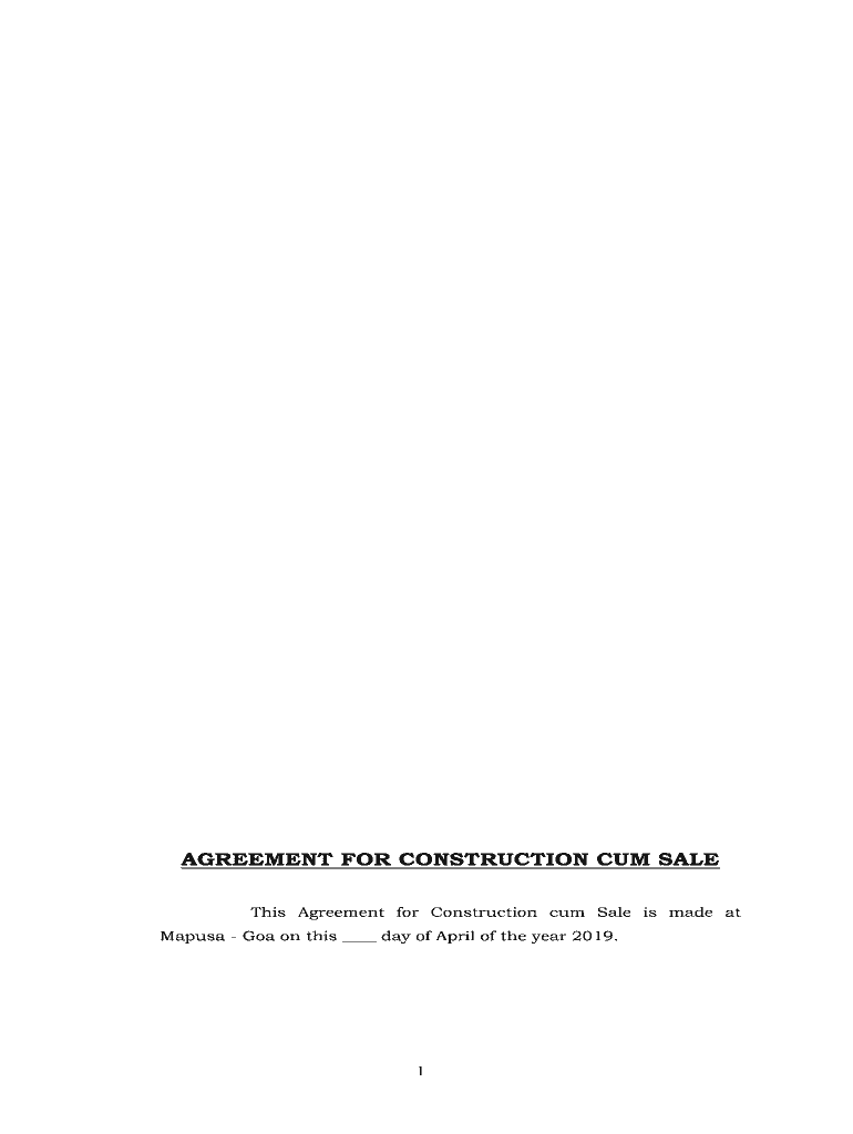AGREEMENT FOR CONSTRUCTION Come SALE This Agreement for Construction come Sale is made at Maps Goa on this day of April of the year 2019.1BETWEEN I. M/S. M. G. DEVELOPERS, a Partnership Firm having