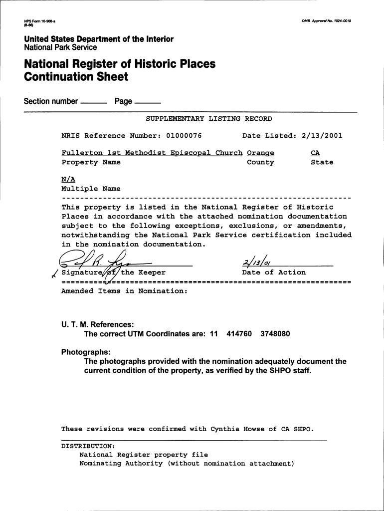 NPS Form 10900aOMB Approval No. 1024O018United States Department of the Interior National Park ServiceNational Register of Historic Places Continuation Sheet Section number Page SUPPLEMENTARY LISTING