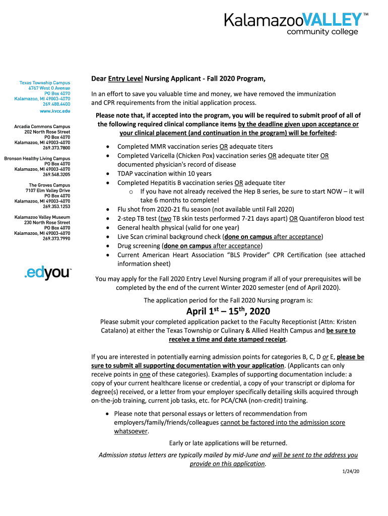 Dear Entry Level Nursing Applicant Fall 2020 Program, In an effort to save you valuable time and money, we have removed the immunization and CPR requirements from the initial application process.