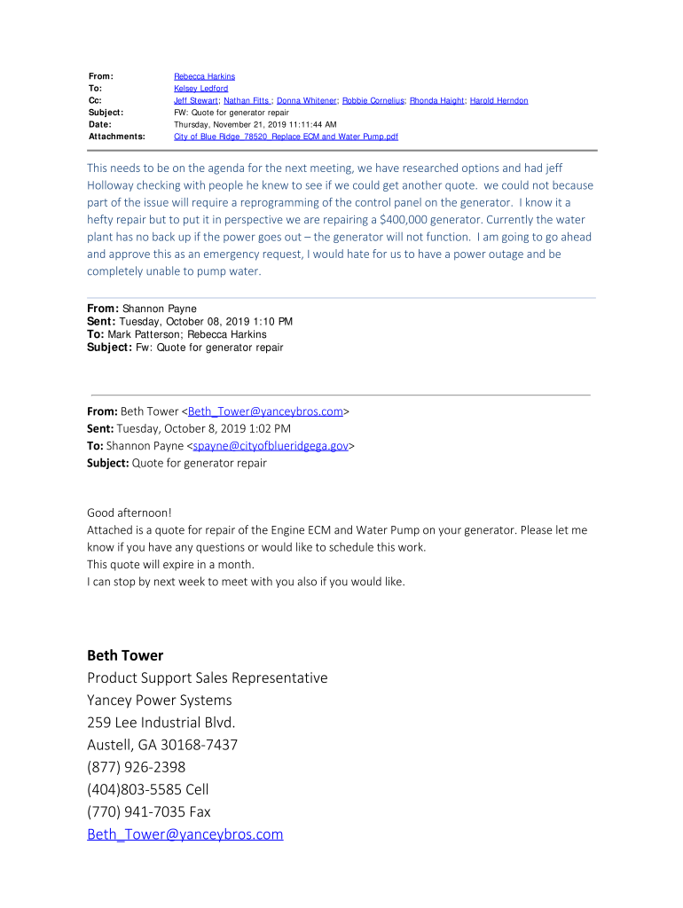 FW: Quote for generator repair