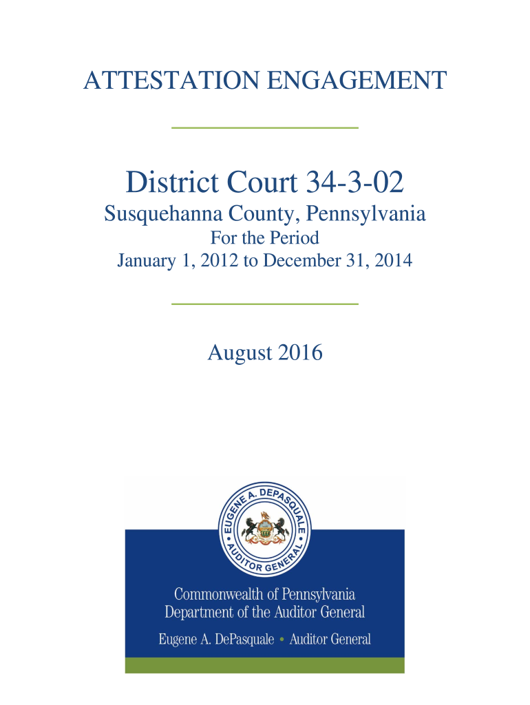 ATTESTATION ENGAGEMENT District Court 34302 Susquehanna County, Pennsylvania For the Period January 1, 2012, to December 31, 2014, August 2016Independent Auditors Reportage Honorable Eileen McNulty