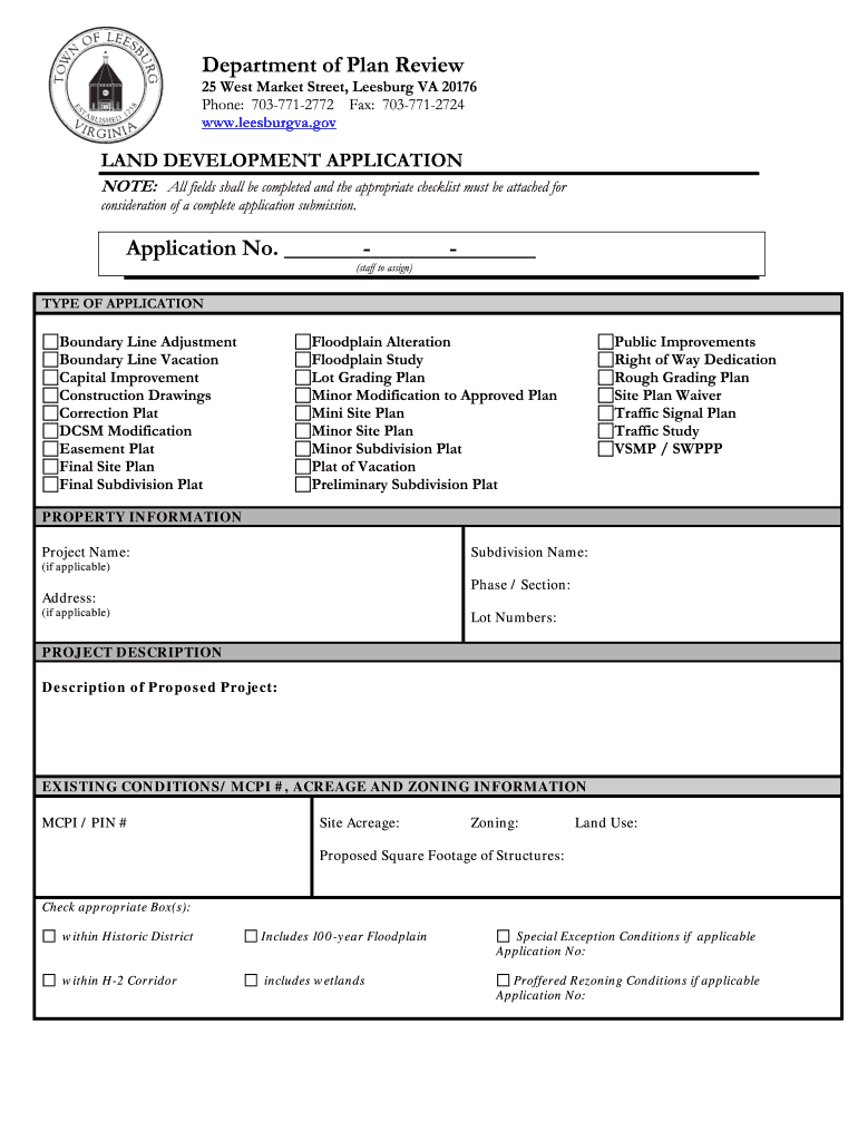 www.leesburgva.govLAND DEVELOPMENT APPLICATION