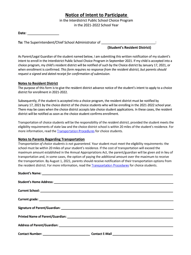 Get the free Notice of Intent to Participate in the Interdistrict ...