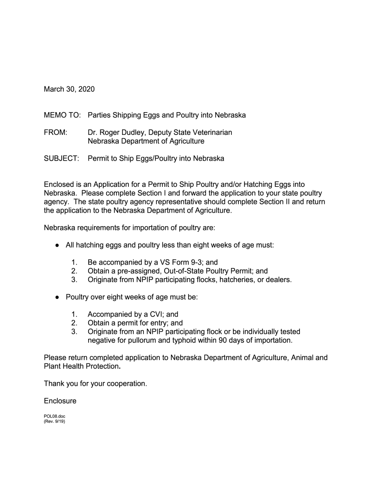 Get the free March 30, 2020 MEMO TO: Parties Shipping Eggs and Poultry into ...