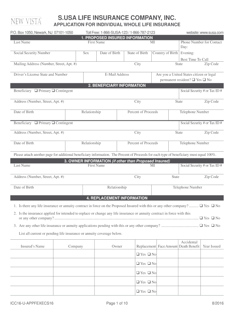 APPLICATION FOR INDIVIDUAL WHOLE LIFE INSURANCE