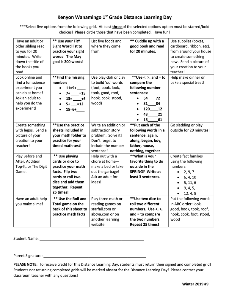 Get the free Kenyon Wanamingo 1st Grade Distance Learning Day
