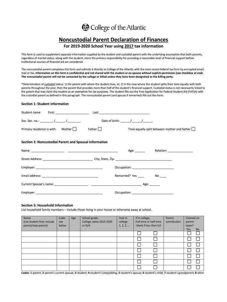 This form is used to supplement separate information supplied by the student and custodial parent with