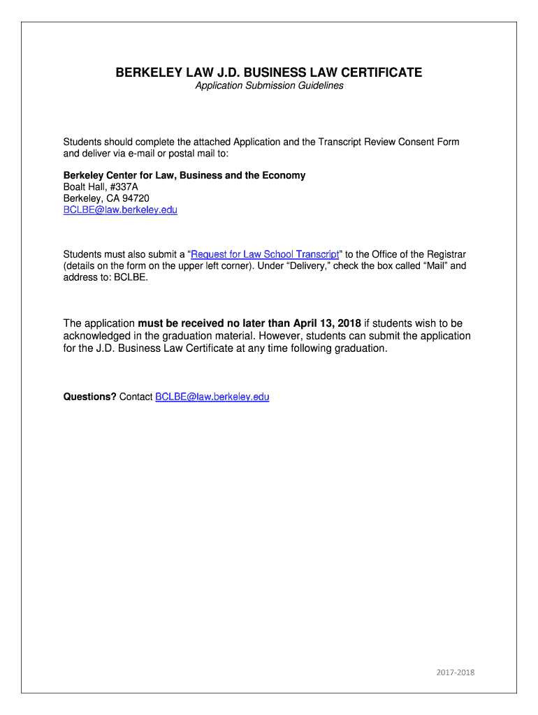 BERKELEY LAW J.D. BUSINESS LAW CERTIFICATE