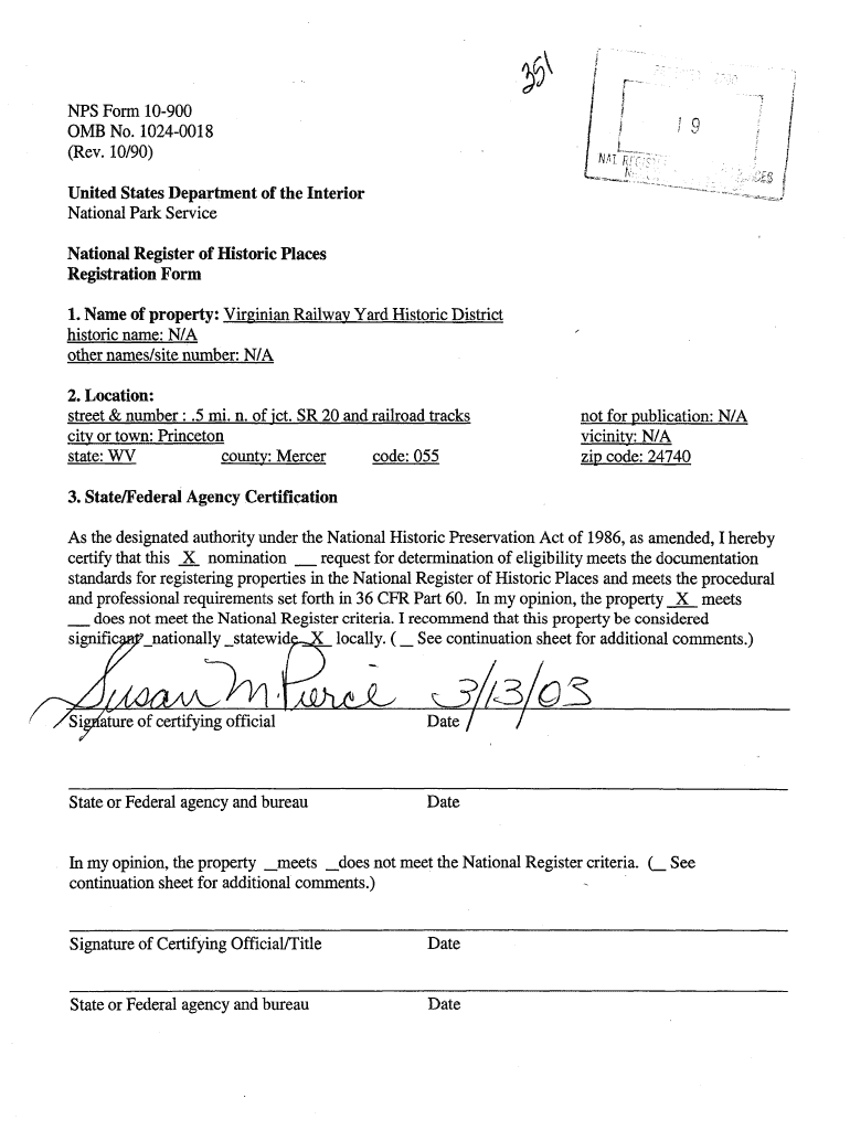 Get the free NFS Form 10-900 OMB No. 1024-0018 . / / 9 (Rev. 10/90) National ...