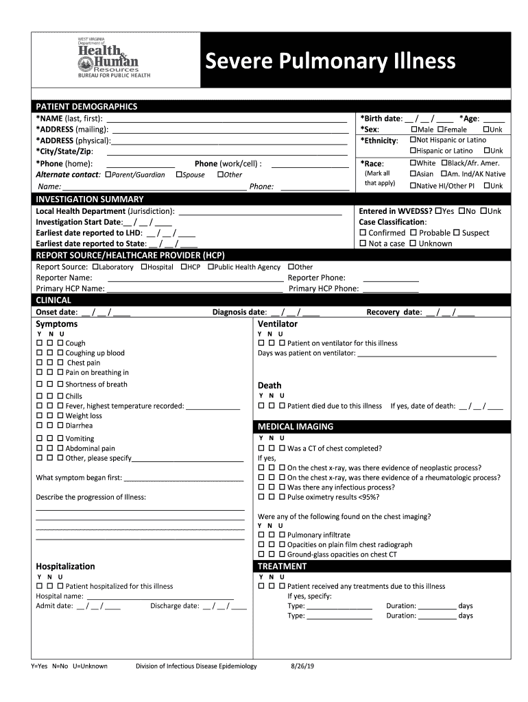 Severe pulmonary illness cases can be filled out using specific forms provided by health authorities.