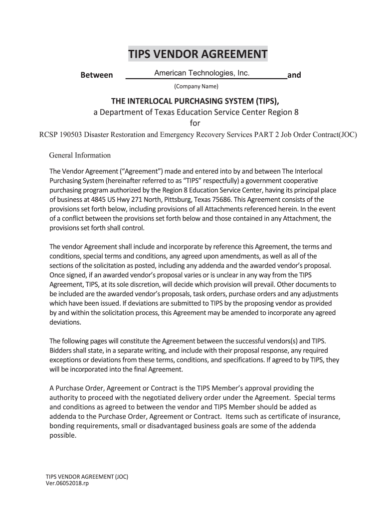 Get the free Disaster Restoration and Emergency Recovery ... - TIPS-USA