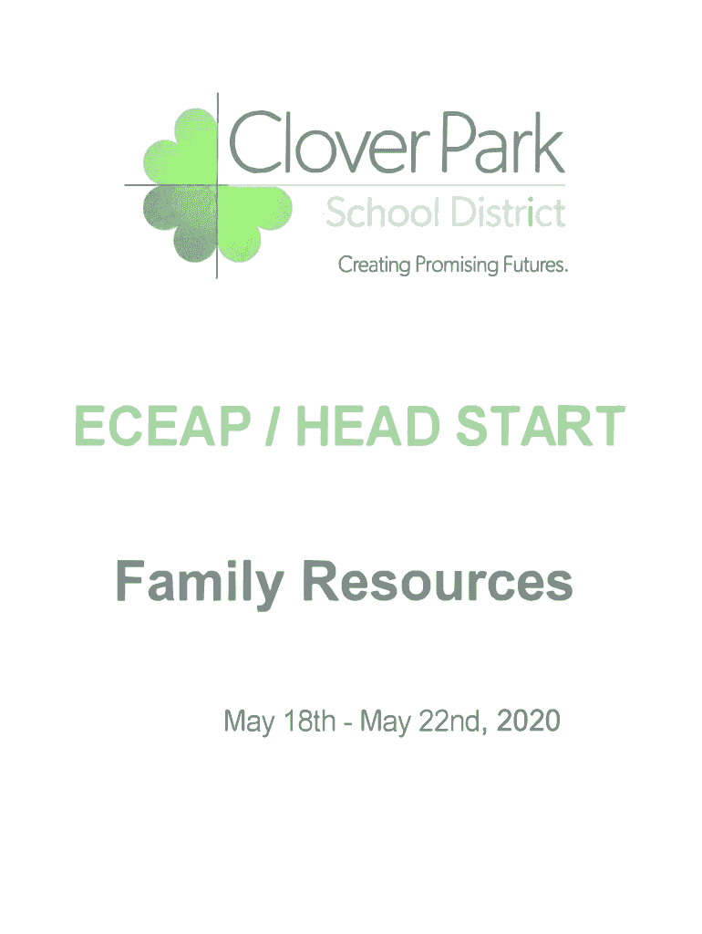 Clover Park School Dist creating Promising Futures.EC EAP / HEAD START Family Resources May 18th May 22nd, 2020Helpful Hints for Students and Families Materials You Will Need: Pencils Extra paper