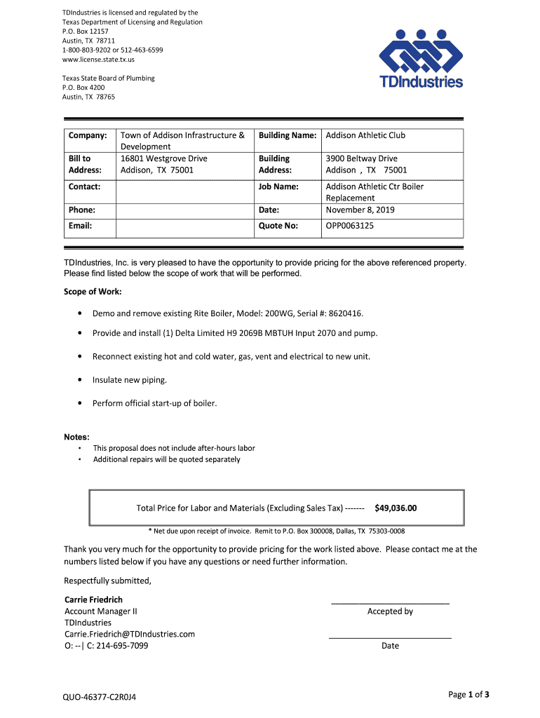 Fill out your tdindustries is licensed and online with pdfFiller!