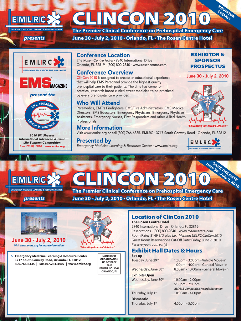 CLINTON 2010 RE G TO IS DA TER Y! The Premier Clinical Conference on Prehospital Emergency Care June 30 – July 2, 20. . Orlando, The Rose Center Hotel 2010 Conference Location EXHIBITOR & SPONSOR