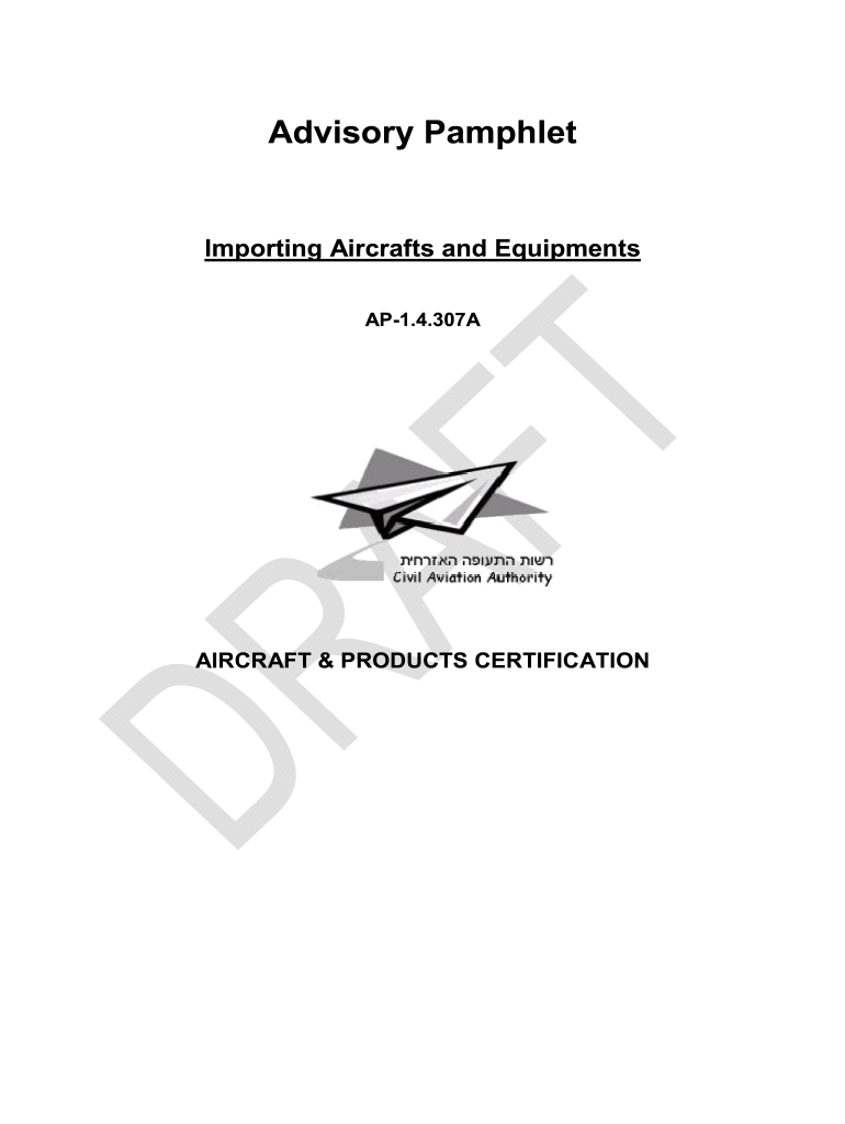 Advisory PamphletImporting Aircraft and Equipments AP1.4.307AAIRCRAFT & PRODUCTS CERTIFICATION01/03/2010.1AP1.4.307A Importing Aircraft and Equipments)(purpose .1.1 : .1.1.1,