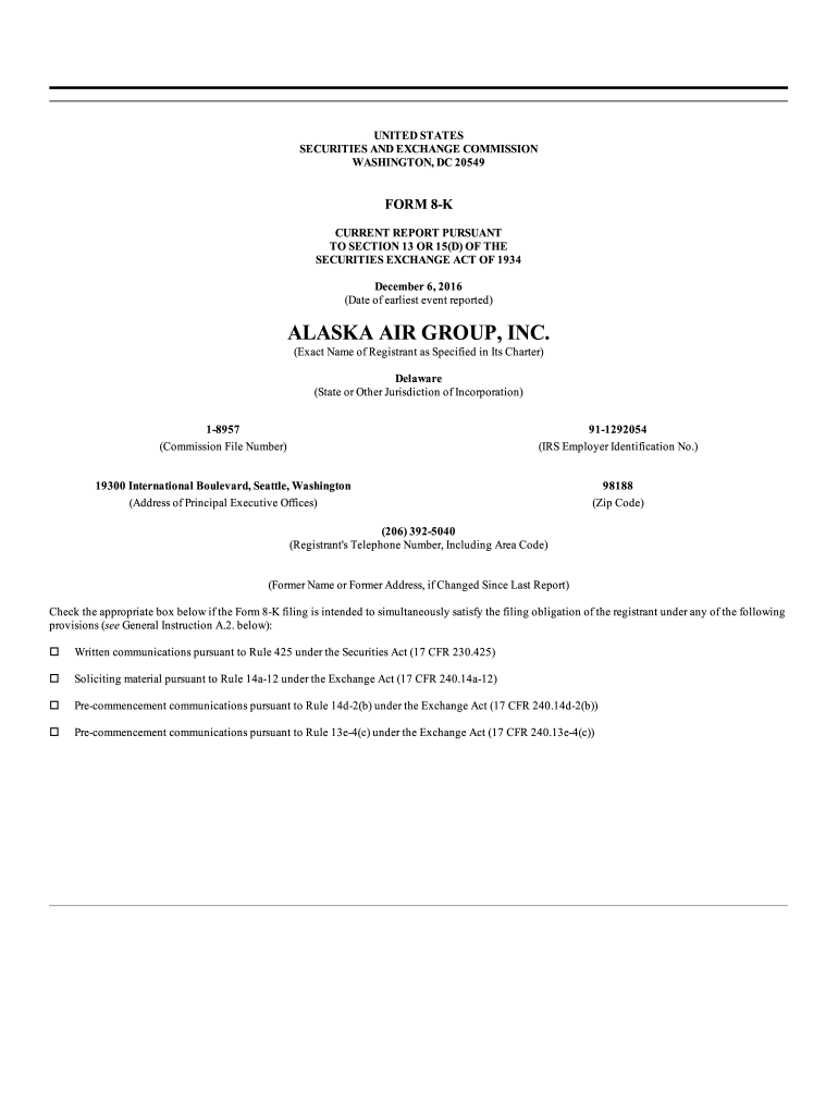 Get the free On December 6, 2016, Alaska Air Group, Inc