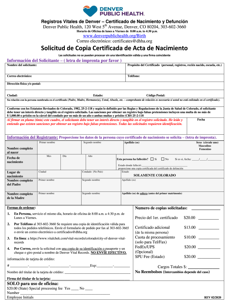Get the free Registros Vitales de Denver Certificado de Nacimiento y Defuncin