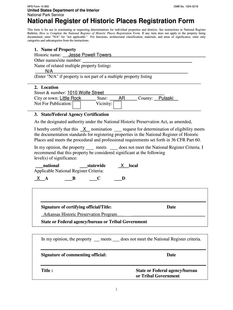 NPS Form 10900OMB No. 10240018United States Department of the Interior National Park ServiceNational Register of Historic Places Registration Form This form is for use in nominating or requesting