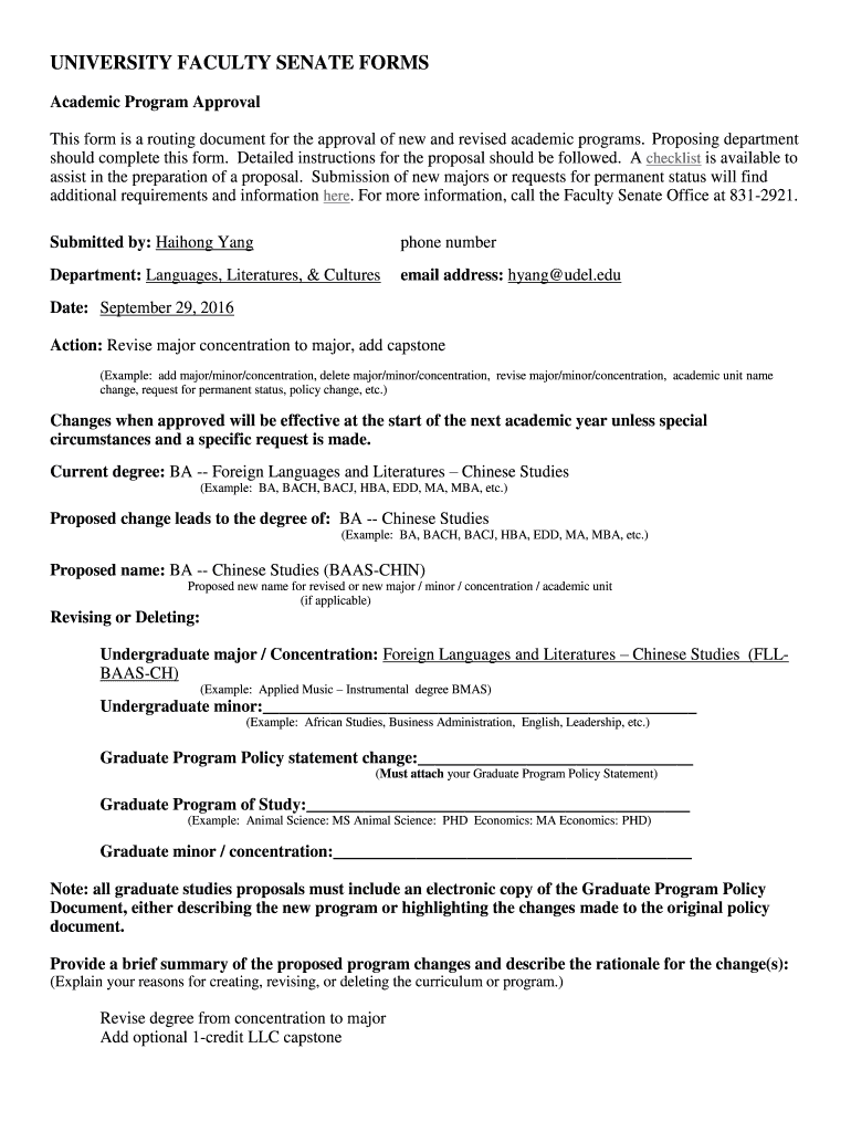 Get the free UNIVERSITY FACULTY SENATE FORMS - cas.udel.edu