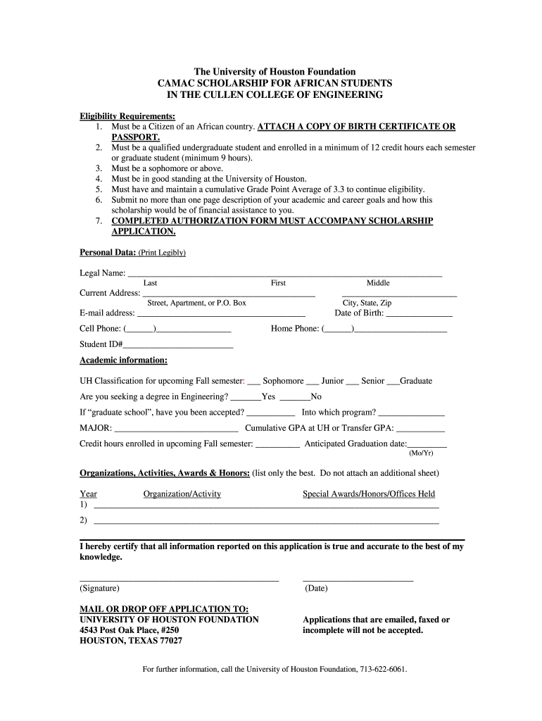 1. Must be a Citizen of an African country. ATTACH A COPY