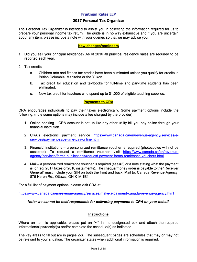 2017 Personal Tax Organizer