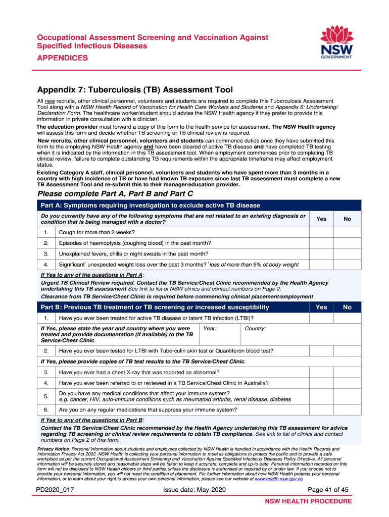 Policy DirectiveOccupational Assessment, Screening and Vaccination Against Specified