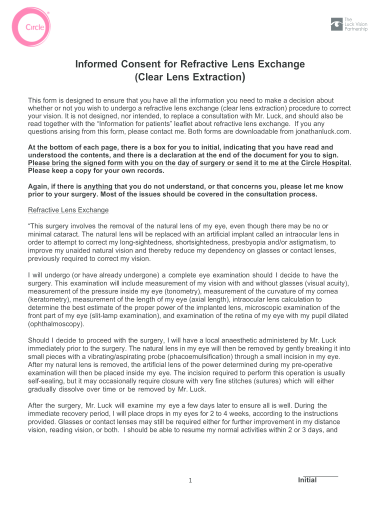 Get the free Informed Consent for Refractive Lens Exchange (Clear Lens ...