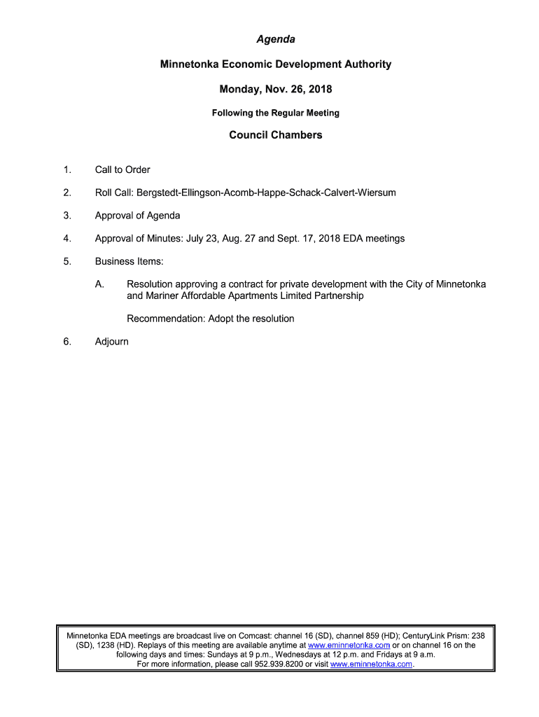 Get the free Agenda Minnetonka Economic Development Authority Monday, Nov ...