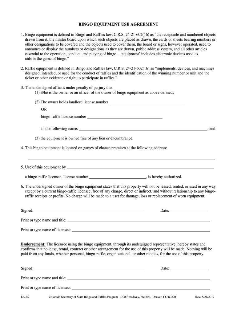 Get the free bingo equipment use agreement - Colorado Secretary of State